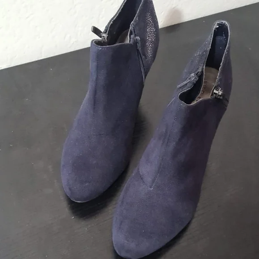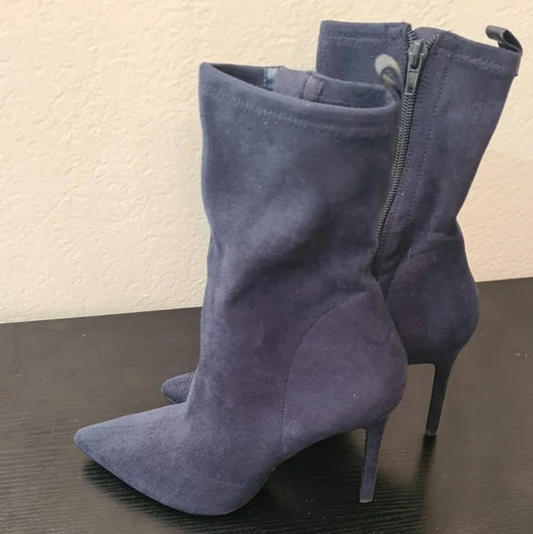 M&S Navy Blue Suede Ankle Boots High Heels 3.25" Elegant NWT | Clearance Sale