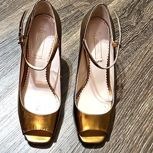 UTERQUE (ZARA) TEGU GOLD Heels 9/US 40/EU Pre-Owned | Best Clearance Sale
