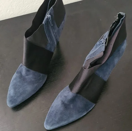 M&S Blue Suede Leather Ankle Boots Size 4/5, High Heels | Best Clearance Sale
