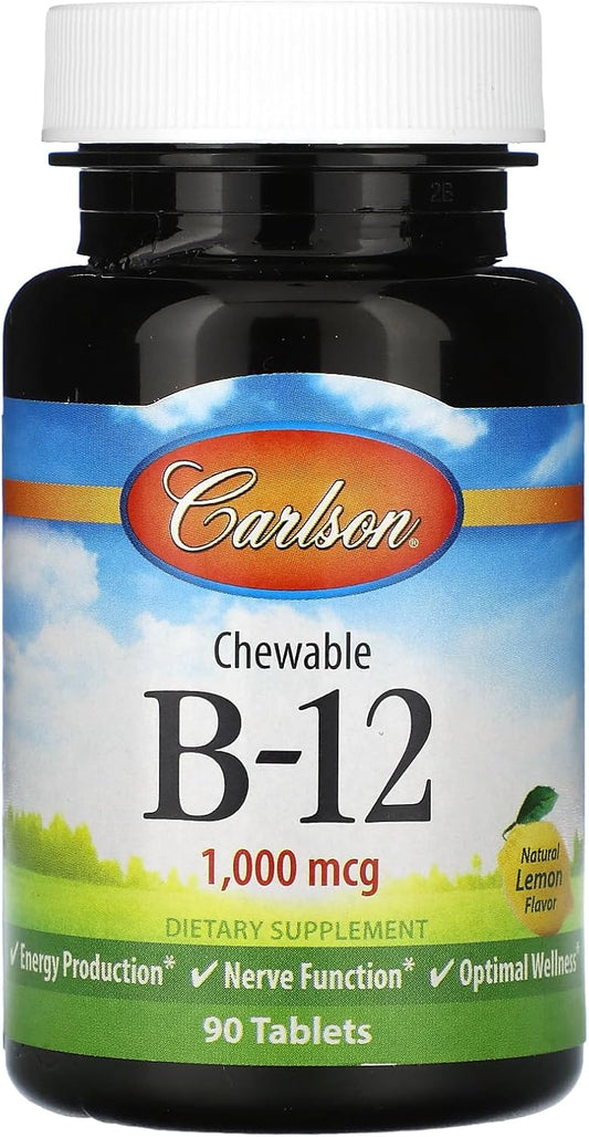 Carlson Labs B-12 1000mcg – 90 Chewable Tablets for Energy Support | Clearance